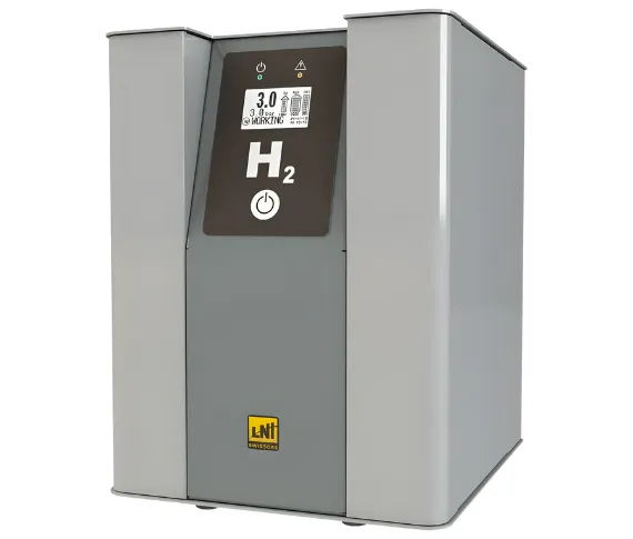 The HG ST PRO includes an electrolytic cell with polymeric membrane (PEM) using distilled water. The two-column PSA drying system with automatic regeneration ensures the maximum grade of hydrogen purity, and is completely maintenance-free.