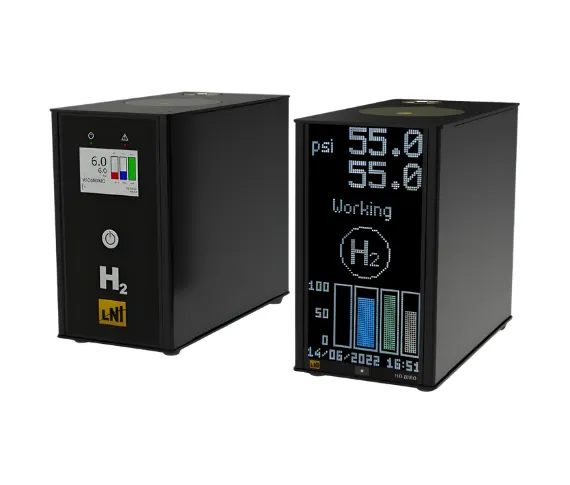 The innovative gas drying system (two-column drying PSA system with automatic regeneration) ensures the maximum grade of hydrogen purity, it is completely maintenance-free and allows continuous operation, 24 hours a day. The on-board CPU automatically check for internal leaks and constantly control the operating parameters to guarantee full safety.